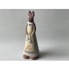 Keramická dekorace velikonoční paní zajícová v zástěře. Zástěra je zdobena jemně malovanými vajíčky a květinovými motivy, které dodávají celkovému vzhledu nádech jara a svěžesti.
