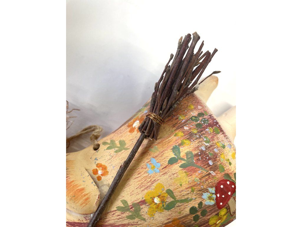 - Přírodní detaily: Koště je vázané z opravdových větviček a měšec je z poctivé látky – detaily, které u masové výroby nenajdete.