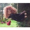 Vlasatá keramická čarodějnice jako závěsná dekorace do prostoru s koštětem a měšečkem.