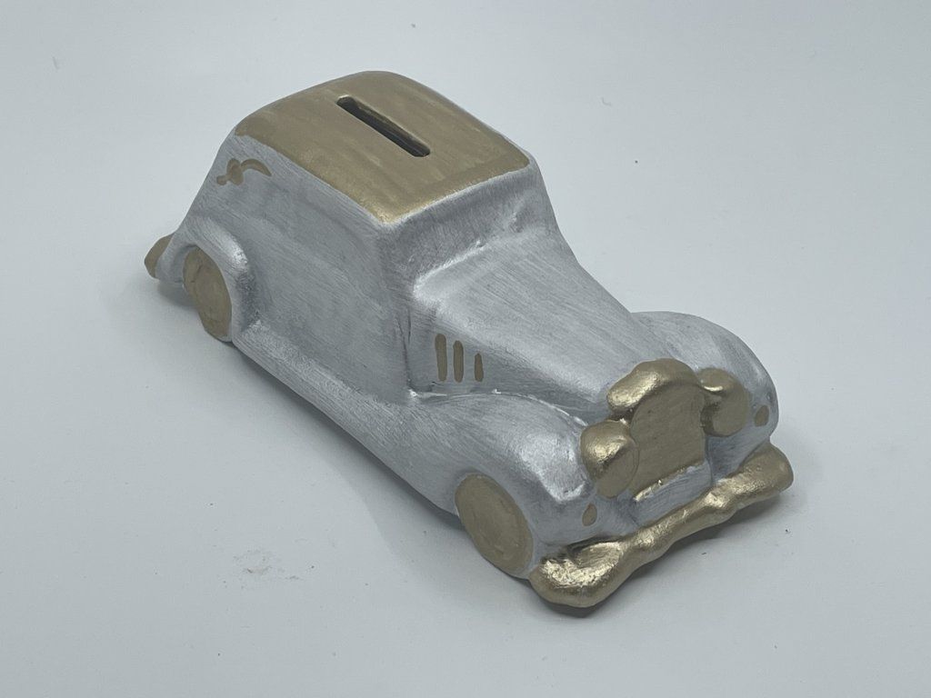 Hledáte originální dárek pro milovníka aut nebo elegantní dekoraci do interiéru? Kasička Zlatý Veterán spojuje krásu starých časů s praktickým využitím. Ručně malované detaily ve stříbrno-zlatém provedení působí luxusně a nadčasově. Není to jen obyčejná pokladnička – je to dekorace s charakterem, která přitáhne pozornost a zároveň pomůže ukládat drobné radosti na horší časy i velké sny.