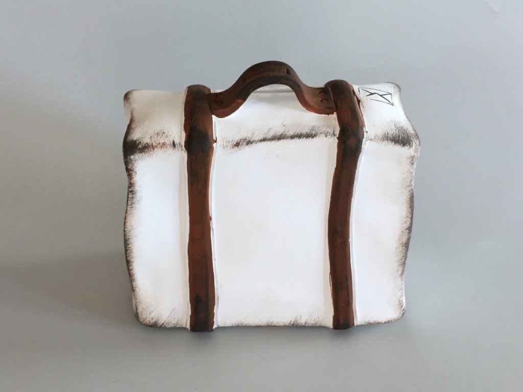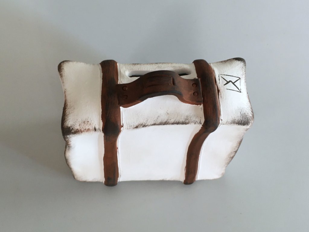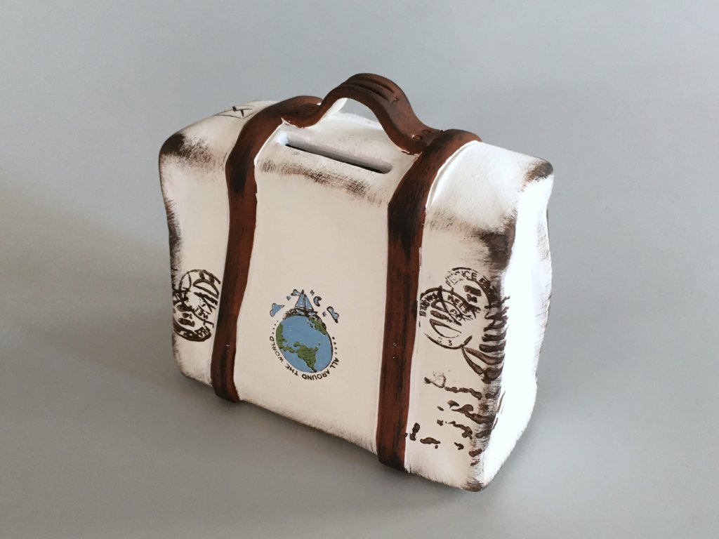 Pokladnička na mince v podobě retro kufru. Můžete do ní spořit na dovolenou a je také skvělým dárkem pro všechny výletníky a cestovatele. Výška 10 cm.