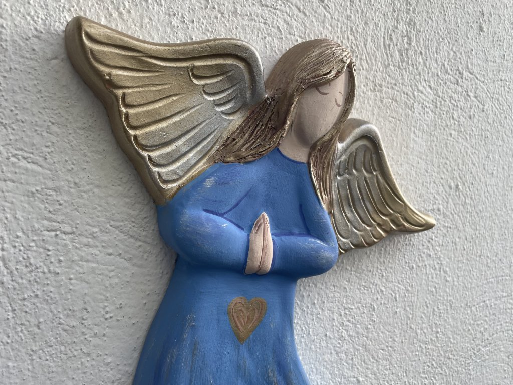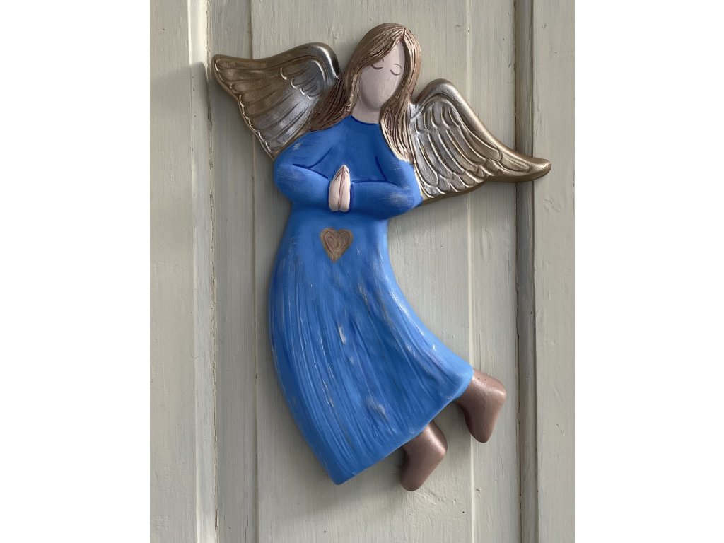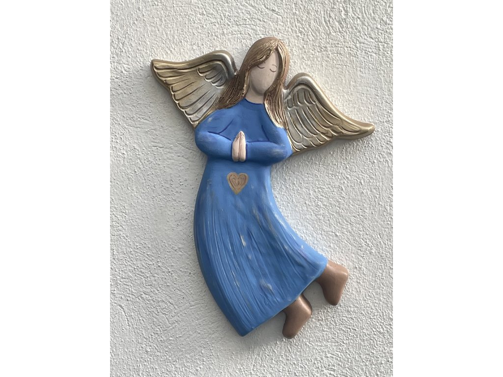 Keramický Anděl hojnosti je ručně vytvořená a malovaná dekorace, která vnese do vašeho domova klid, světlo a symboliku ochrany. Anděl má jemný výraz, zlatá křídla a modré šaty, v nichž drží srdce jako poselství lásky a hojnosti.