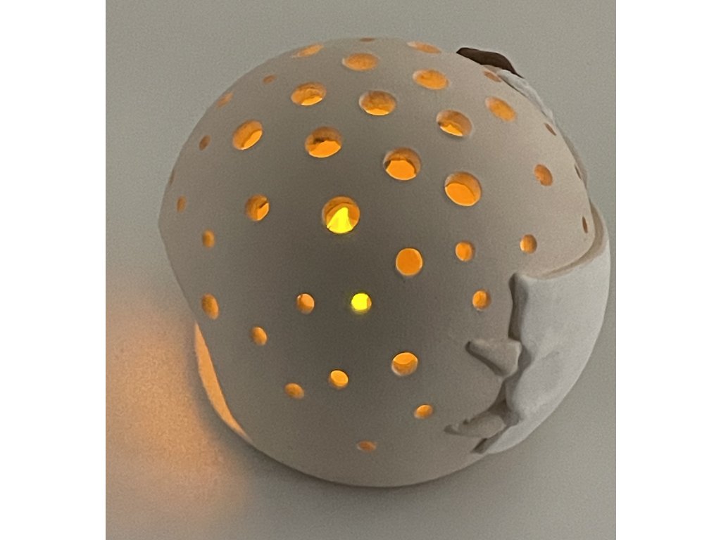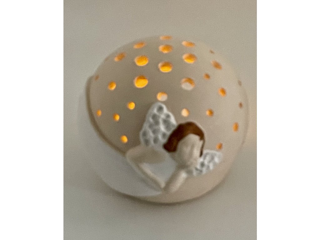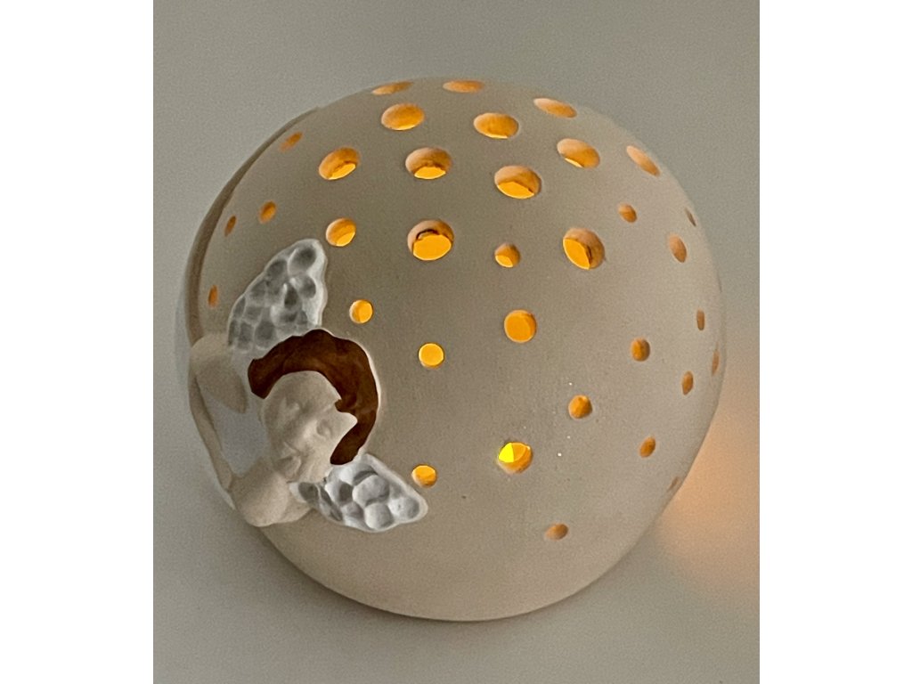 Objevte kouzlo jedinečné keramické dekorace na svíčku — Prořezávanou kouli s letícím andělem. Každý kus je ručně vyroben v Česku malou rodinnou keramickou dílnou Keramika Andreas®, která stojí za tradicí poctivé řemeslné práce.