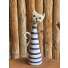 Keramická figurka kočka velká v letním bílo-modrém provedení s proužky. Velikost 31 cm.