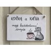 Keramická cedulka s nápisem slouží k pověšení na zeď. Pro milovníky koček a kávy.