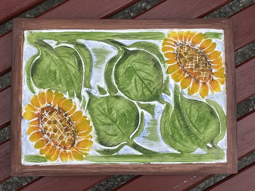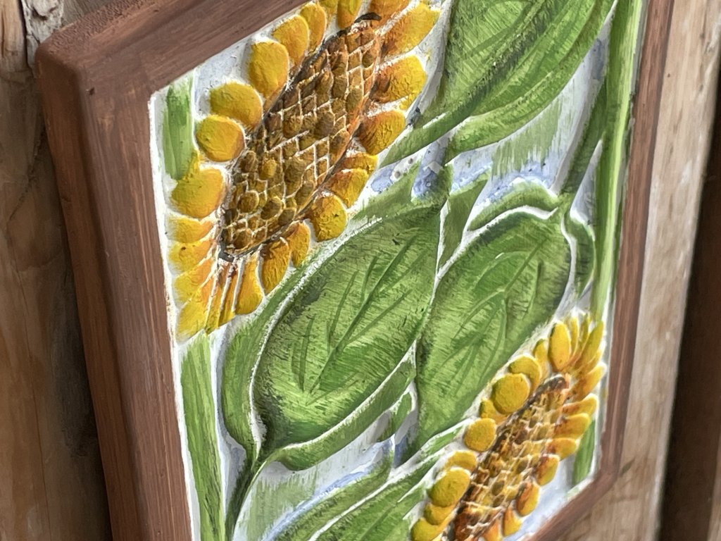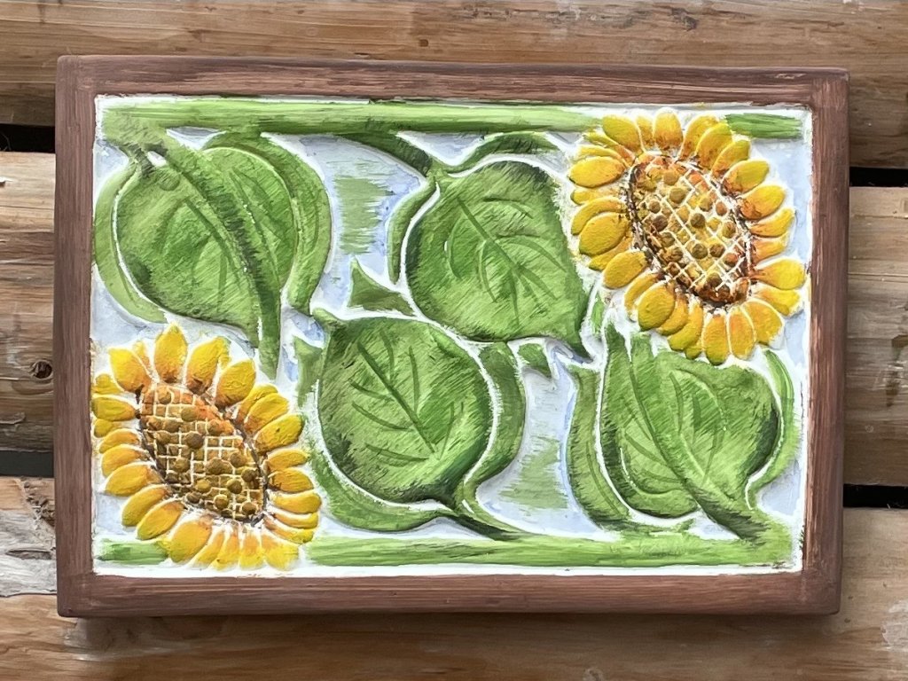 Keramický kachel se slunečnicemi