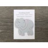 Přáníčko s veselým keramickým sloníkem ve dvou barevných variantách slouží jako malý dárek pro štěstí. Na kartičce je nápis „Chceš mít štěstí, úspěch, zdraví? Tenhle sloník to hned spraví!“