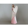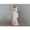 Keramická dekorační soška anděla s růžovou sukní, srdíčky a s cedulkou anděl lásky. Velikost asi 26 cm.