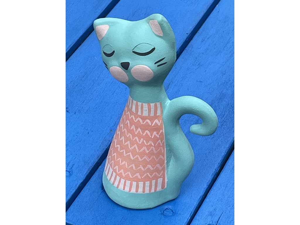 Keramická kočka Bibi Klidek potěší každého, kdo miluje útulnost a pastelové tóny. Její hebký „svetřík“ a zavřená očka navozují pocit bezpečí a pohody. Ideální dárek pro ty, co si rádi vychutnají ticho domova. Ručně vyrobená, každý kus je neopakovatelný originál.