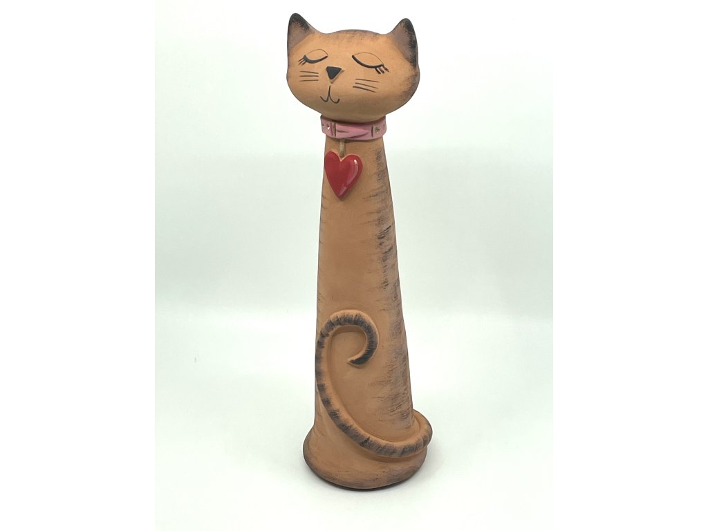 Divoká kočka lásky je keramická dekorace pro všechny, kdo milují kočky, svobodu a tichou něhu. Štíhlá, elegantní silueta, zavřené oči a červené srdce na krku vypráví příběh o kočce, která si nenechá poroučet – ale miluje naplno. Výška 30 cm.