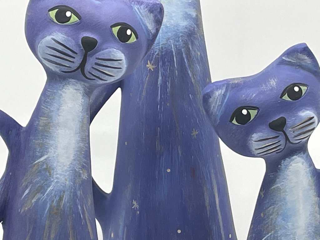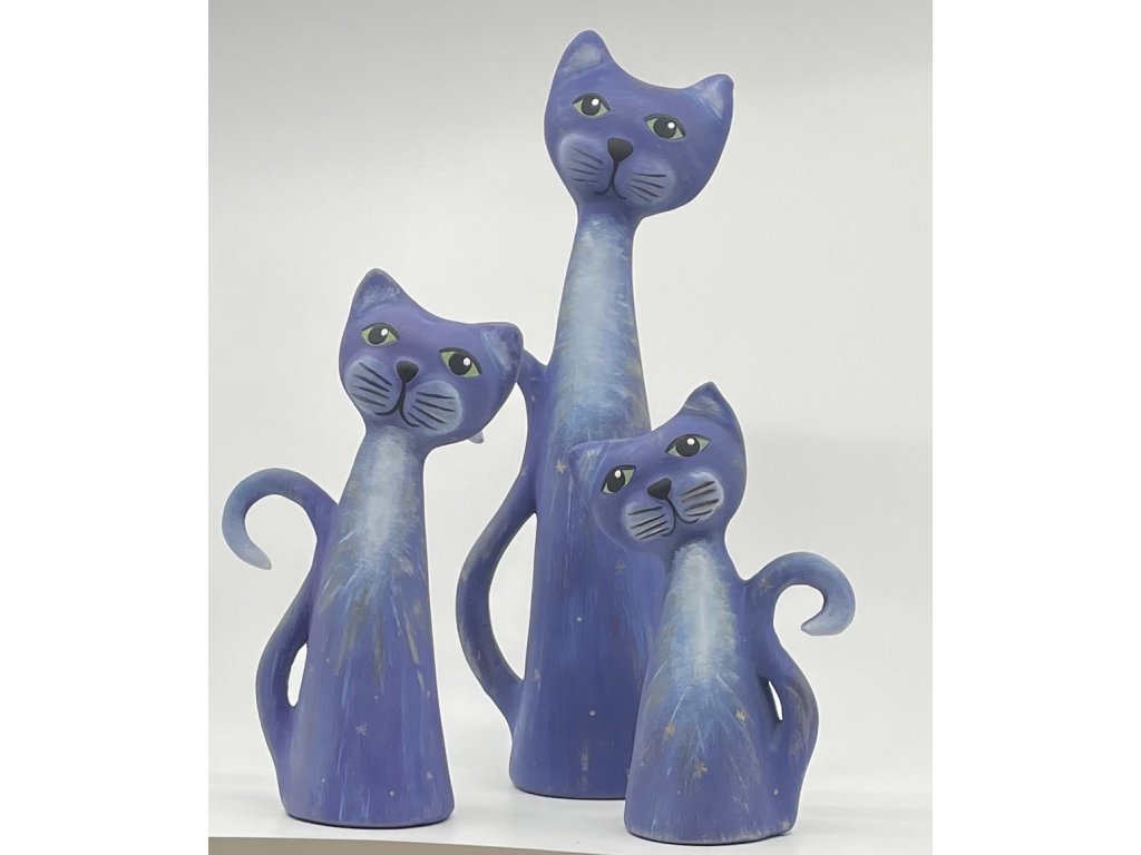Půlnoční kočky – trio jsou originální keramické dekorace inspirované klidem a tajemstvím noční oblohy. Každá kočka je ručně vyrobená, s jemnými hvězdnými odlesky a ladnými liniemi, které vytvářejí dojem elegance a jemné pohádkovosti.