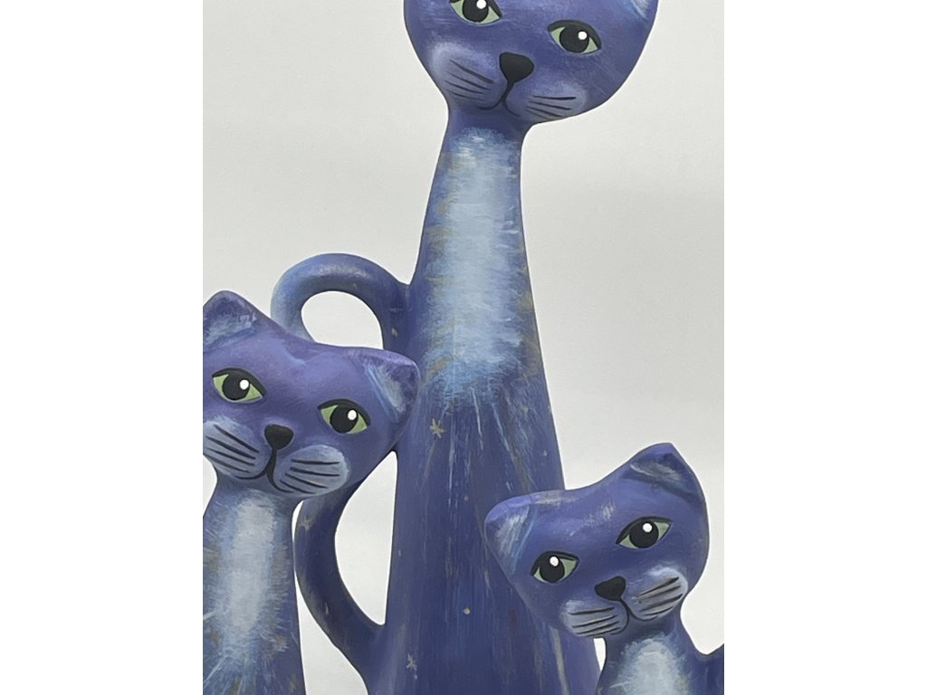 Set obsahuje tři kočky různých velikostí, které spolu tvoří harmonický celek — ideální na komodu, poličku, krbovou římsu či do ložnice. Díky svému tvaru a barevnosti působí jako malý kouzelný příběh uprostřed domova.